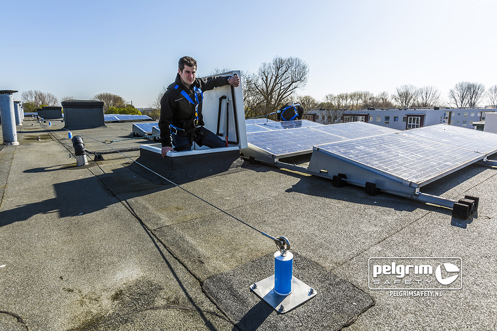 - Het SafeLine valbeveiligingssysteem hebben wij permanent gefixeerd aan het dak, de waterdichte afwerking is gedaan door de dakdekker die ook het dak onderhoudt.