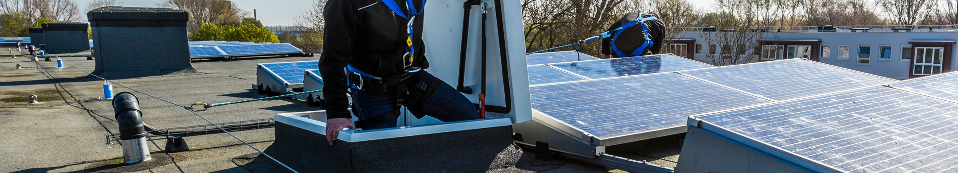 De pandeigenaar heeft het dak voorzien van PV zonnepanelen. Het noodzakelijke onderhoud om de opbrengst hoog te houden gedurende de jaren moet veilig gebeuren. De opgang van het dak was onveilig omdat het dakluik te klein was en er afgekeurd klimmaterieel aanwezig was.
